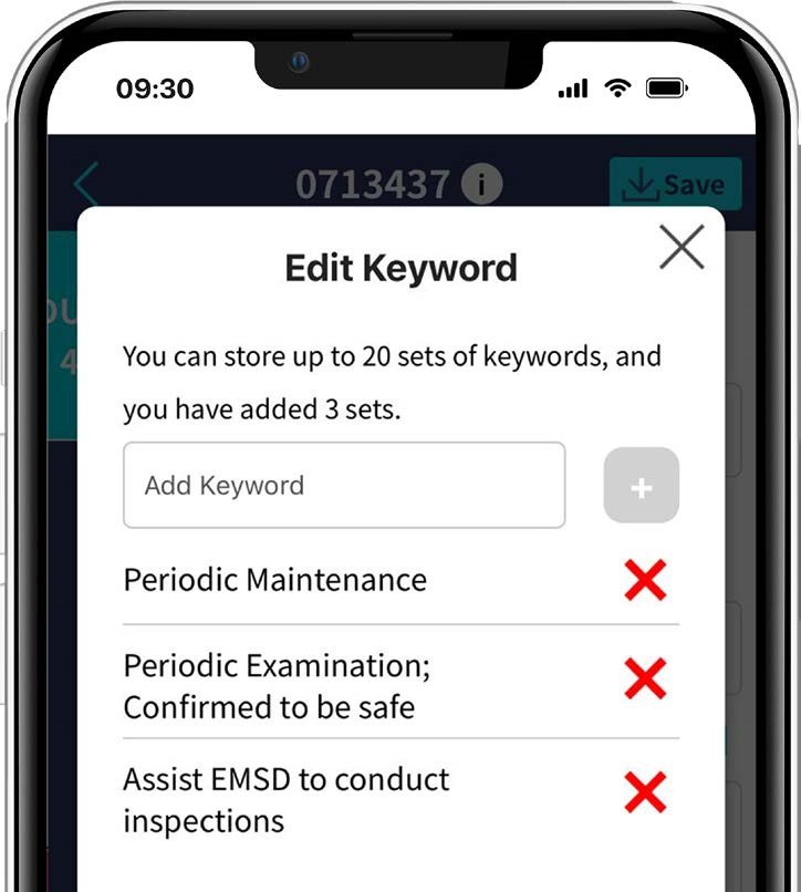 An “Edit Keyword” function has been added to the mobile app of the Digital Log-books. Using the function, trade practitioners can add custom keywords that are frequently used to their remarks to describe work details in a convenient and efficient way.