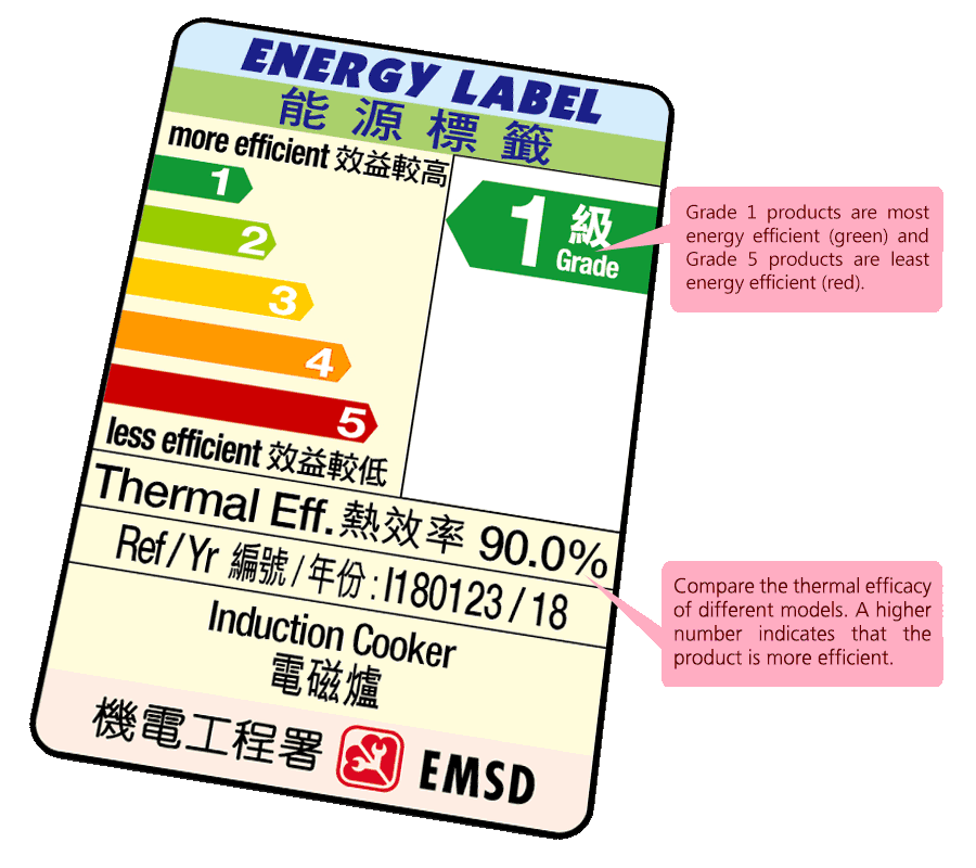 Grade 1 products are most energy efficient (in green colour). Grade 5 products are least energy efficient (in red colour).