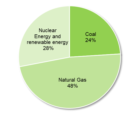In the overall fuel mix for electricity generation in Hong Kong, natural gas dominates the fuel mix in Hong Kong, in 2020 on set-out basis, at around 48%, followed by nuclear energy and renewable energy accounted for around 28% and coal for around 24% [2].