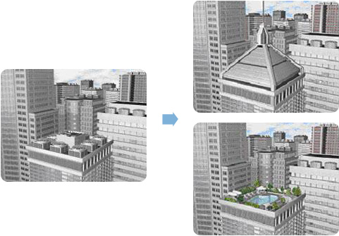 天台無須裝設製冷裝置,使建築師在設計大廈的外觀時有較大彈性。由於無須裝設製冷裝置,大廈天台的設計可以加入較多美化元素,例如康樂設施和天台花園。這樣可以改善城市的景觀。