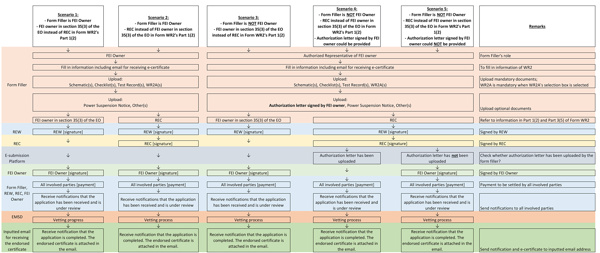 | Step one: | The GF owner or his/her authorised person fills in the application form and uploads the documents required, such as the completion letter of renewable energy feed-in tariff scheme and work completion certificate (Form WR1). |
