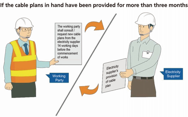 By the way, please be reminded that the working party should keep a copy of the Cable Alignment Record and the Written Report on site until the works are completed without the occurrence of any cable damage. The Cable Alignment Record and/or the Written Report should also be posted on the barrier or railing on the site for site personnel's reference.