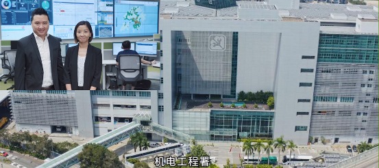 航拍机电署总部大楼。工程师、技术员、两母女走进机电署总部,