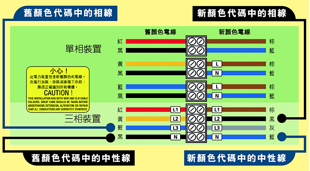 香港的新电线颜色代码全面实施日期为: |