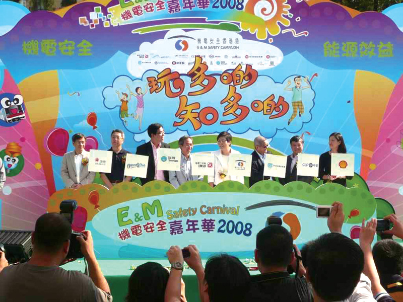 在2008年11月15及16日于香港铜锣湾维多利亚公园举行的机电安全嘉年华,是机电安全香港通2008其中一项主要活动,节目包括摊位游戏、歌星演唱、话剧汇演及设有大型吹气城堡和游戏的儿童游乐区,让市民一家大小寓教育于娱乐,增进不少机电安全和节约能源的知识,两天共有超过一万二千名市民参加了嘉年华。
