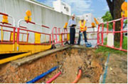 - 清楚显示有关人员进行环形有源探测及在工地上标示电缆准线和深度的照片