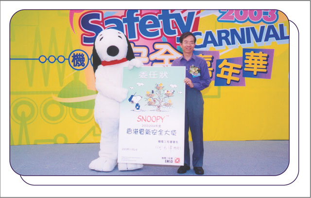 机电工程署副署长何光伟先生向Snoopy颁授「 2003/2004年度香港电气安全大使」委任状