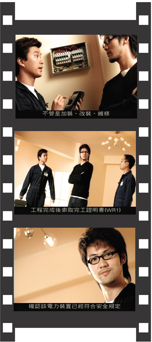 今年初, Yumiko家中经常停电,但邻居却没有同样问题,为了安全起见,她决定请人进行检查。Yumiko在本署网页内很快便找到附近一个注册电业承办商,替家中的电力装置做检查。该承办商委派的注册电业工程人员到达Yumiko家中,很快便找出了一个漏电的电路,并发现问题所在。工程人员随即更换有问题的电线及修妥相关的电气设备,并细心地向Yumiko讲解一番。工作完成后,该承办商及工程人员签发了一张《完工证明书》给Yumiko,以证明有关电力工作符合法定的安全规格。工程人员还向Yumiko展示了一本《电力(线路)规例工作守则》,并告诉她本港对电力装置安全的要求相当高,注册电业承办商及工程人员会严格按照有关守则进行电力工作。