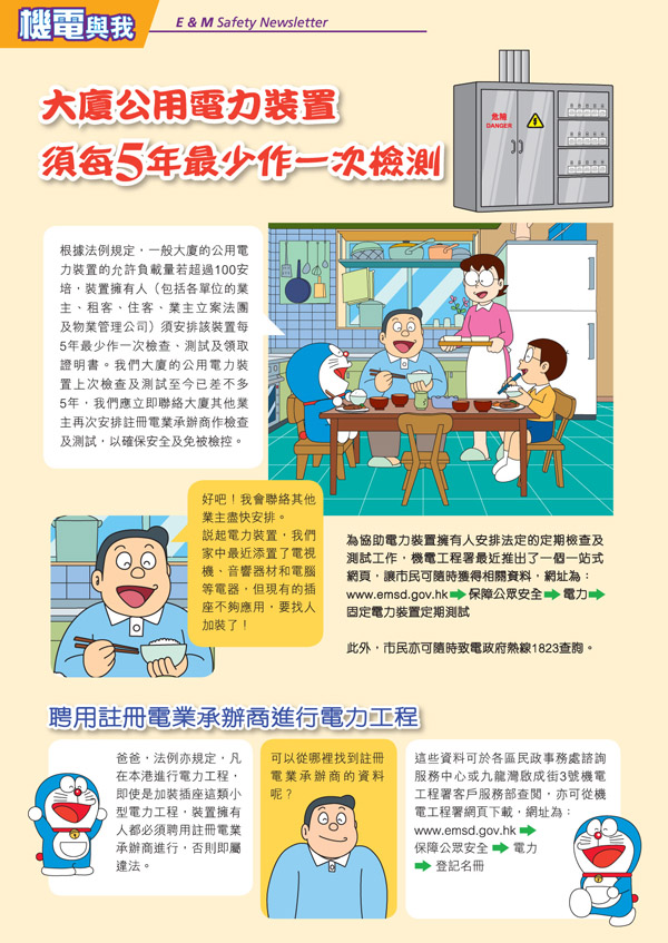 - 大廈公用電力裝置須每5年最少作一次檢測