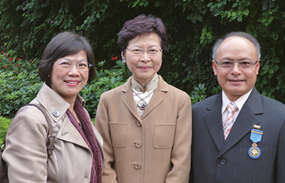 李民正(右)與太太(左)一同分享獲政府頒授榮譽勳章的喜悅。