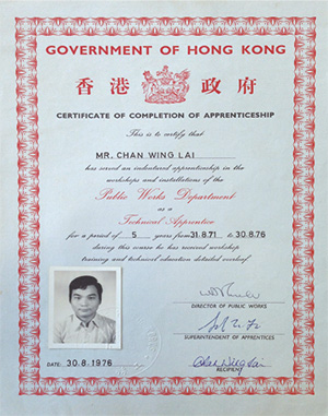 1971年入職工藝學徒,退休前是職業訓練局學徒事務署