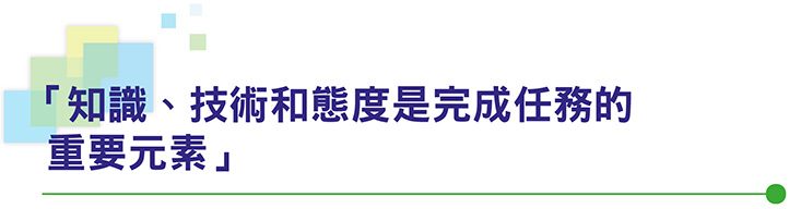 梁漢波在機電署負責過不少特別項目,從中他領略到「知識、技術和態度」Knowledge-Skill-Attitude (KSA)的重要性。