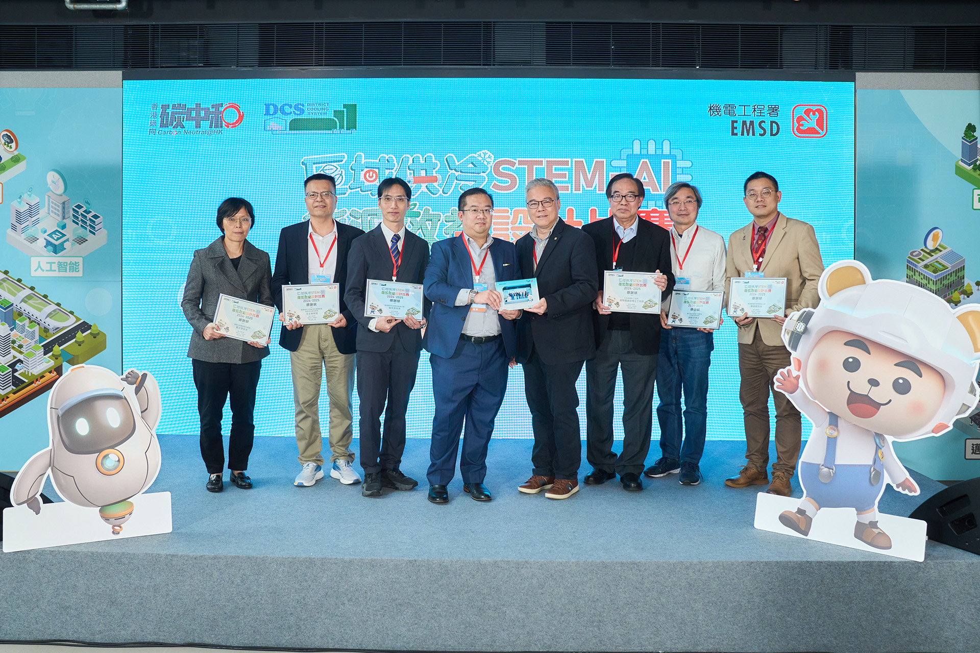 署長為一眾評審頒發感謝狀,環境及生態局首席助理秘書長(能源) 周健聰先生(左四)抽空出席活動。