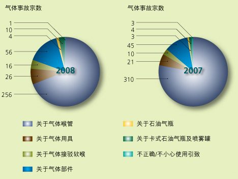 香港2008年的气体事故数字不但比2007年减少了7%,而由于我们与气体供应公司通力合作,加强巡查,再加上密集的安全宣传工作,有关气体喉管的事故同期内更大幅下降了17%。