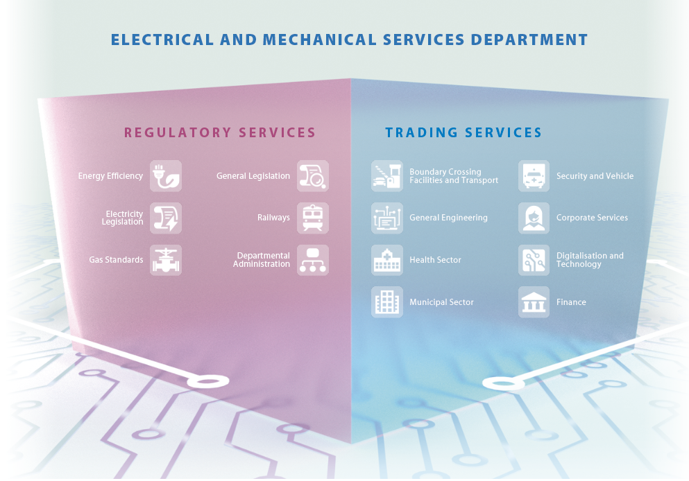 The Electrical and Mechanical Services Department (EMSD) is a government department that provides electrical and mechanical (E&M) services via two functional arms, namely, Regulatory Services (RS) and Trading Services, of which the latter is also known as the Electrical and Mechanical Services Trading Fund (EMSTF). The EMSD plays a dual role of regulating E&M safe operations by means of law enforcement and public education, while providing professional, comprehensive and cost-effective E&M engineering services for government departments and public bodies to continuously enhance our citizens’ quality of life.