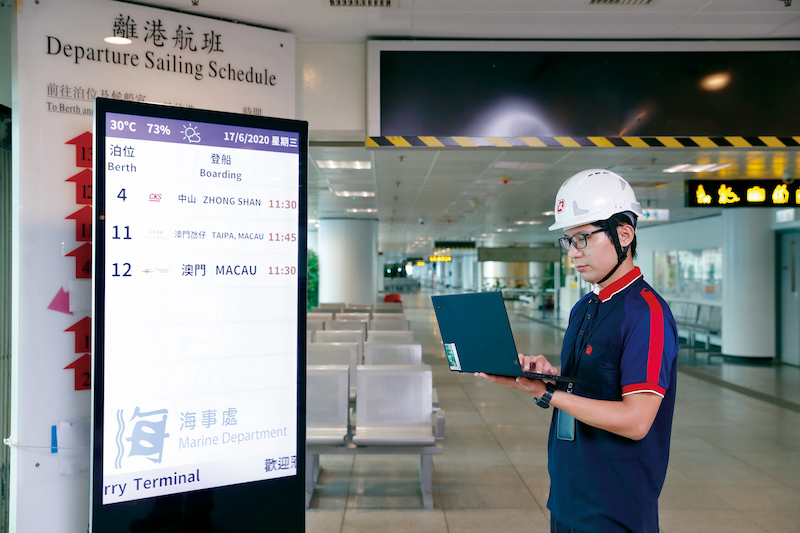 The IoT-based Sailing Information Display System leverages IoT technologies to update passengers on the departure time and destination, and display specific information of the China Ferry Terminal such as the weather conditions. It also collects information about the operating status of the nearby E&M equipment for remote monitoring.