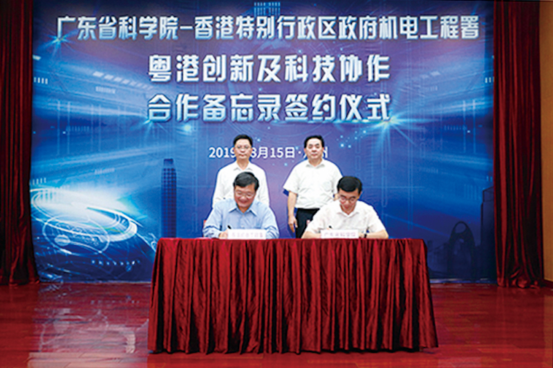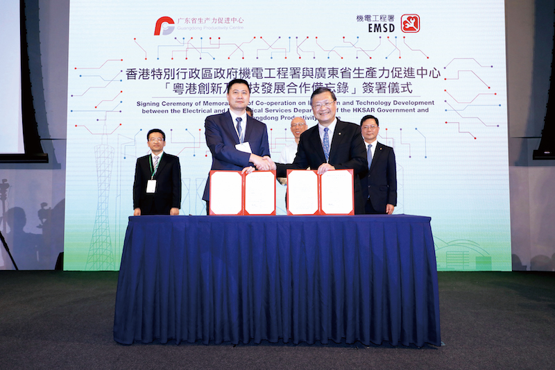The EMSD signed memoranda of co-operation with the Guangdong Provincial Association for Science and Technology, the Guangdong Productivity Centre and the Guangdong Academy of Sciences respectively in August 2019 to enhance I&T exchange and co-operation between Guangdong and Hong Kong.