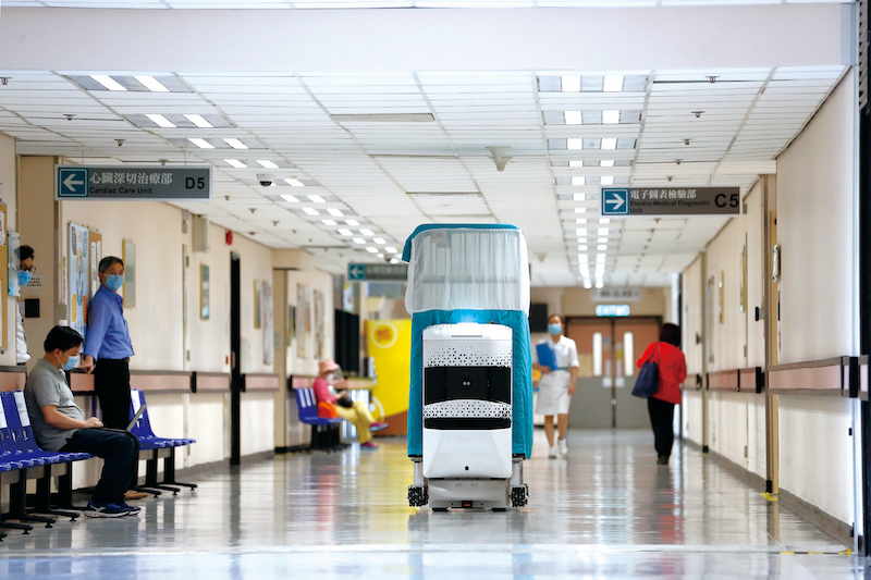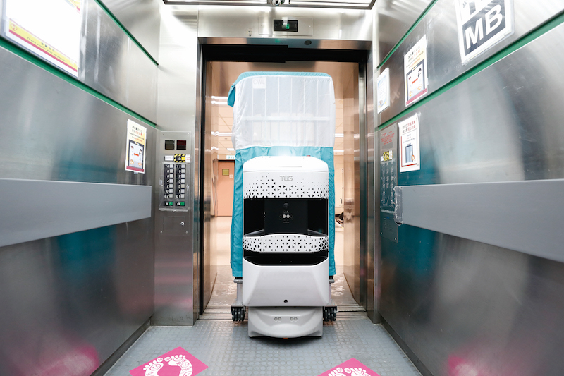 We set up communication interface between the lifts and passage doors at the Pamela Youde Nethersole Eastern Hospital and its delivery robot, thereby ensuring the robot’s delivery by allowing the robot to ride lifts and open doors automatically and smoothly. The robot can deliver objects such as bed linens to a designated area via a pre-set route so as to reduce the manpower demand.