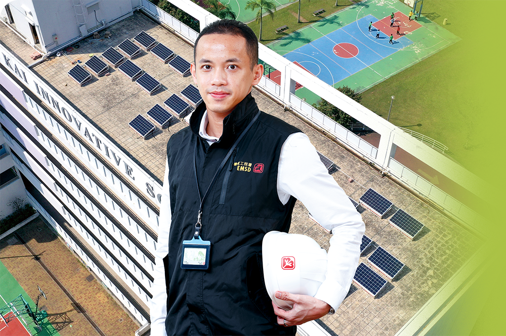 Mr Lee Hang-mun, Edward, is keen to contribute to the field of environmental protection through his profession as an engineer. After a number of years in the private sector, Edward joined the Energy Efficiency Office of the EMSD in July 2019 as a Building Services Engineer. He is responsible for implementing the new Solar Harvest programme, which is designed to provide one-stop service and full subsidy to help eligible schools and welfare non-governmental organisations (welfare NGOs) install small-scale solar photovoltaic (PV) systems and join the Feed-in Tariff (FiT) Scheme offered by the two local power companies.