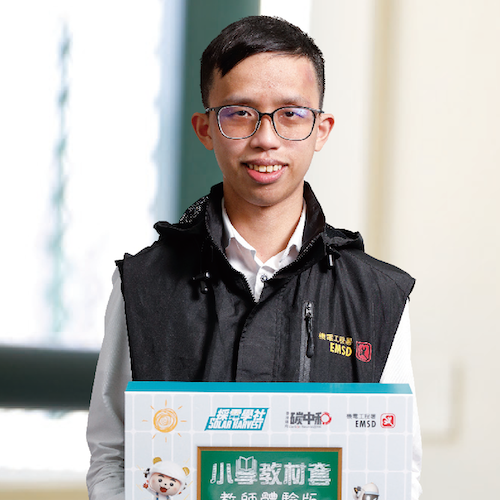 为推广使用可再生能源,机电署不仅透过「采电学社」为合资格的学校安装太阳能发电系统,更着手编制STEAM教材套,提升学生对科学学习的兴趣,并增进他们对可再生能源和应对气候变化策略的认识。能源效益事务处助理工程师林彤谦先生勇于接受新挑战,踏出机电工程的舒适圈,投入从未涉足的教材编制工作。
