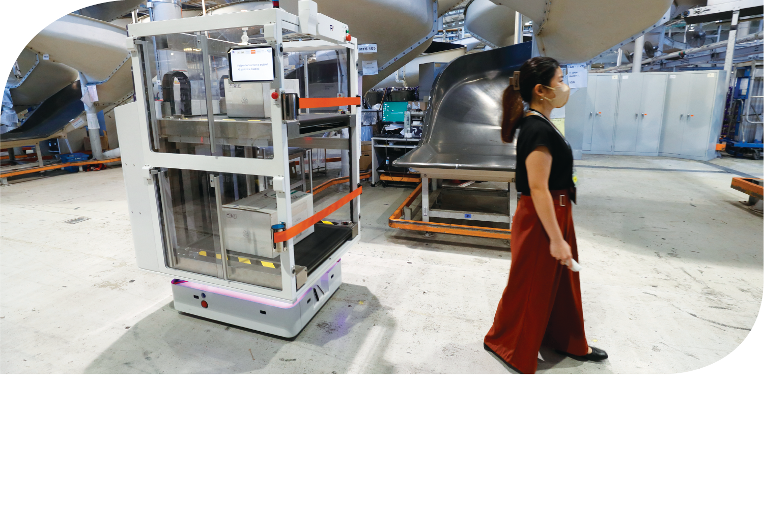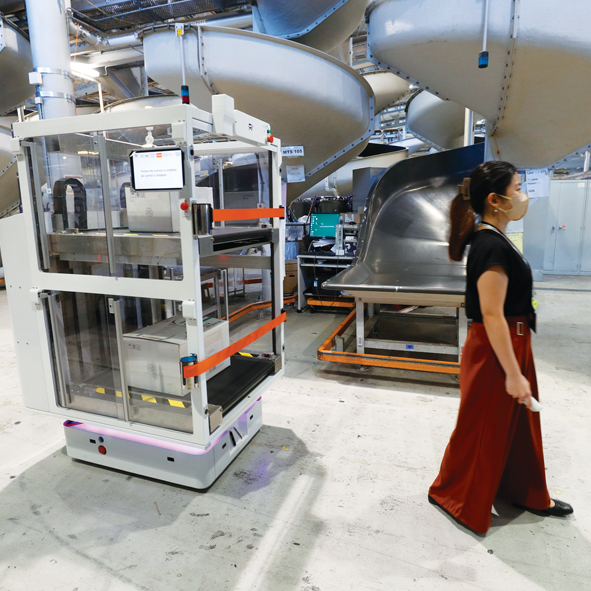 Hong Kong International Airport. Equipped with a “follow-me” feature, the Porter can also follow