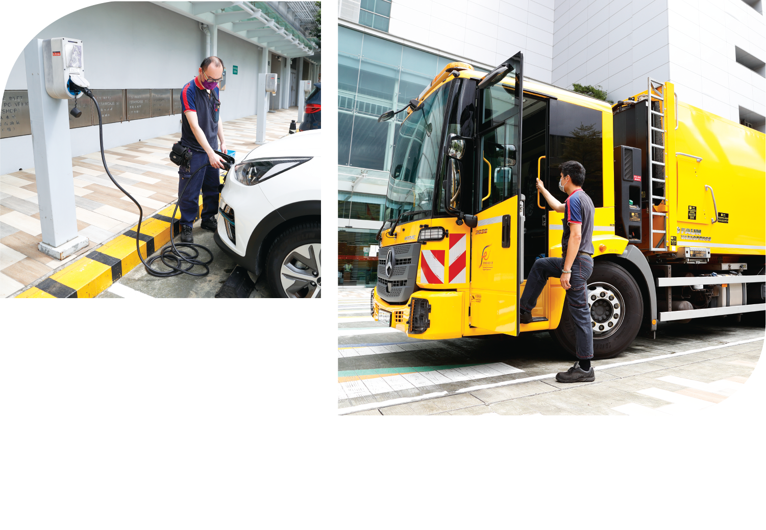 (Left) The new electric vehicle with zero carbon emission can improve roadside air quality.