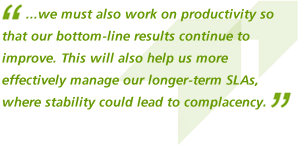Turning to challenges faced during the year, rising cost was top of the list. We are fortunate in that demand for E&M service is not totally contingent on the ups and downs of the economic cycle. Yet, like all businesses, inflation can easily erode our margins. I have always been optimistic about the growth potential of our top-line revenue; given the size of our client base, modest growth per client results in considerable growth overall. However, we must also work on productivity so that our bottom-line results continue to improve. This will also help us more effectively manage our longer-term SLAs, where stability could lead to complacency.