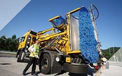 | 专为八号干线青沙管制区采购的洗墙车。大刷用以清洗隧道墙壁,保持隧道照明光度。 |