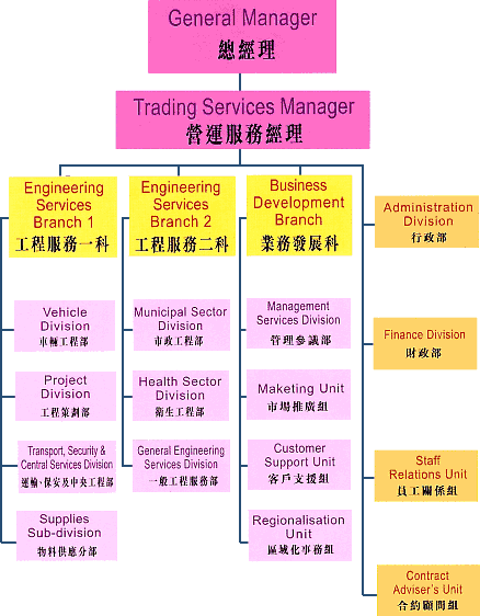 我 們 在 1996年 10月 已 手 草 擬 進 行 結 構 重 組 及 服 務 區 域 化 計 劃, 目 的 在 於 更 有 效 分 配 資 源, 以 滿 足 客 戶 的 需 要, 與 及 在 機 電 工 程 營 運 基 金 內 建 立 以 客 為 主 的 服 務 精 神。 在 制 訂 服 務 區 域 化 計 劃 時, 我 們 會 參 考 客 戶 所 反 映 的 意 見, 就 目 前 提 供 服 務 的 安 排、 對 客 戶 需 要 的 回 應 速 度 和 優 先 處 理 項 目 的 認 識, 以 及 服 務 成 本 等 進 行 研 究。