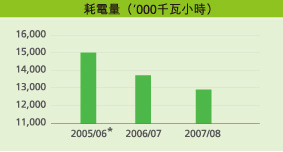 我們在2007/08年度的總耗電量是12.82千兆瓦小時,包括九龍灣總部、加路連山工場、芬園車輛維修工場、小蠔灣車輛維修工場、及赤鱲角空郵處理中心的機電工程署工場。由2005/06至2007/08年度,我們的耗電量已整體下降。
