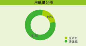 紙張主要用於影印和打印。我們已盡量減少營運過程中的用紙量,例如使用電子文件管理系統。2007/08年度的用紙量較2006/07年度減少了4%。此外,自2001年起,我們已廣泛採用由循環再造纖維製成的環保紙。2007/08年度,環保紙佔部門總用紙量約81%。原木紙只用於對外文件,而且盡量少用。