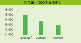 我们在2007/08年度的总耗电量是12.82千兆瓦小时,包括九龙湾总部、加路连山工场、芬园车辆维修工场、小蠔湾车辆维修工场、及赤鱲角空邮处理中心的机电工程署工场。由2005/06至2007/08年度,我们的耗电量已整体下降。