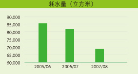 水主要用于空调、园艺灌溉、饮用和清洁等。2007/08年度的总耗水量约为69,000立方米,用于加路连山工场及九龙湾总部等主要场地,用量比上年度减少约18%。耗水量下降有几个原因,包括数个政府部门在前加路连山总部的短期使用安排届满、九龙湾新总部以经过处理的循环回收废水作园艺灌溉等。