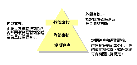 我們會定期進行內部及外部審核, 以評估環境管理系統是否有效運作。 並透過例行定期巡查和運作評核,來審查系統是否符合有關規定。 現時我們有超過100名環境審核員,他們會運用ISO 14001審核技巧為環境管理系統進行內部審核。 此外,我們會邀請獨立的外部核證機構進行ISO 14001監察審核, 確保本署的環境管理系統符合國際標準。 這審核機制為確保及時找出和糾正任何不符合規定的情況。
