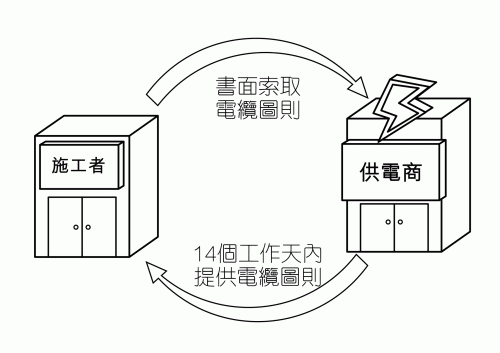 3.1.1 在進行任何工程前,施工者須向供電商索取資料及圖則,除非所進行的只是小型淺土挖掘工程9。