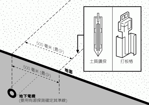4.5.2 垂直貫穿點與已確定地下電纜的準線之間須保持最少500毫米的安全工作距離。