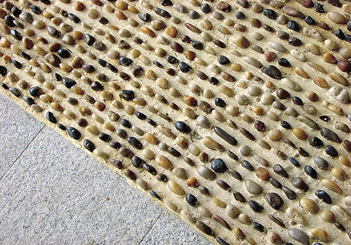 Pebbles for foot reflexology, a design detail inspired by similar features in public parks in Hong Kong.