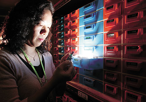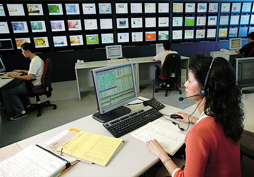 | Rows of LCD monitors in