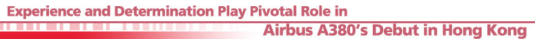 Airbus A380 is the world¡¦s largest passenger plane. The EMSD team was among the units who contributed to this giant plane¡¦s successful maiden landing and parking at the Hong Kong International Airport. It was indeed a great privilege to take part in the project, yet the tight schedule made the assignment all the more stressful.