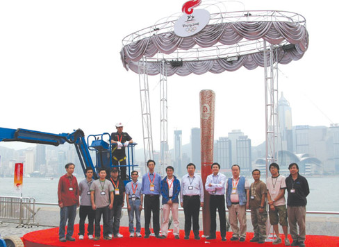 To celebrate the Kick-off Ceremony of the Olympic Torch Relay in Hong Kong at the Hong Kong Cultural Centre Piazza in Tsim Sha Tsui, the Leisure and Cultural Services Department (LCSD) put up a ten-metre high commemorative replica of the Olympic Torch at the venue so that citizens and tourists could take photos of the special occasion. Upon LCSD’s request, EMSD installed four sets of energy efficient LED spot lights to illuminate the Torch, making it a shimmering icon in the evening harbour view. |
