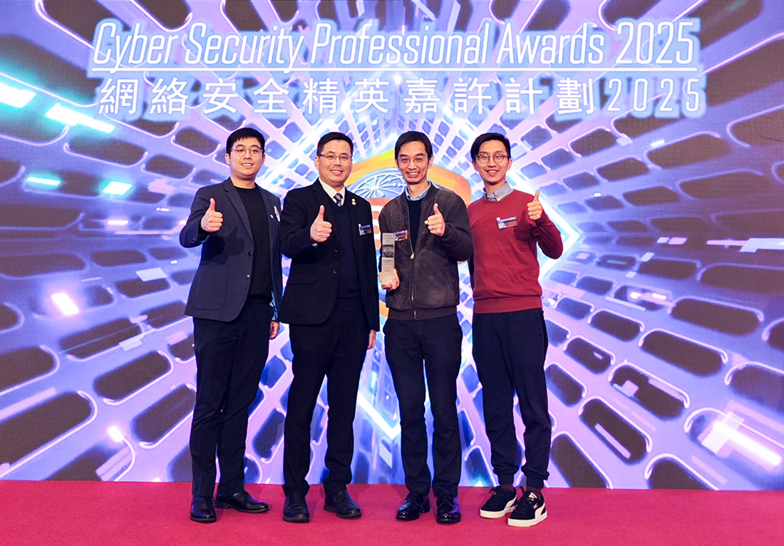 網絡安全是推動創科發展的重要一環。網絡安全精英嘉許計劃2025由香港警務處主辦,旨在表揚對網絡安全貢獻良多的專業人士和機構。在今年1月舉行的頒獎典禮上,機電署高級工程師/資訊科技策略支援1陳禧棪先生獲頒「政府部門及公共機構」界別銅獎。我們為此感到自豪,並會繼續建立穩健可靠的網絡安全環境,以支持創科、智慧城市和數字經濟發展。