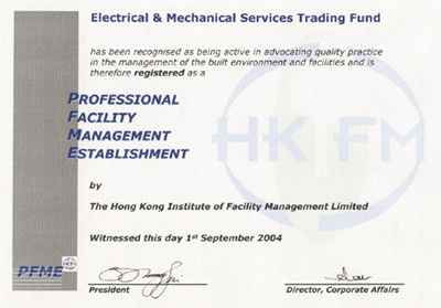 机电工程营运基金获香港设施管理学会登记为专业设施管理机构,以表扬营运基金大力推动物业环境和设施管理的优质方法。