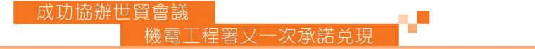 举世关注的世贸组织“香港部长级会议”已于十二月圆满结束,机电工程署是众多协助筹办会议的政府团队之一,提供会议设施、通讯和资讯科技设施及服务。