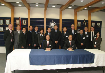 | 机电工程署署长何光伟先生(前左)与警务处副处长(管理)冯兆元先生(前右)签订六年服务水平协议后与双方管理层合照。 |