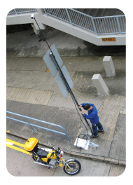 服務發展組於今年五月剛推出的一項新服務,是為運輸署安裝並操作一個流動閉路電視系統。去年因新蒲崗棚架倒塌而導致東九龍大塞車的事件,令運輸署發覺現有的道路監察系統存在某些訊息接收的盲點,遂尋求機電工程署協助。署方的資訊科技人員再次發揮以客為尊的精神,成功設計一套流動閉路電視系統。一旦遇到車輛堵塞、交通意外等情況時,裝有此系統的車輛會被即時派遣,趕到現場設立臨時監察站,務求第一時間搜集盲點路面的交通情況,再採用影像壓縮處理,然後透過數據傳輸直接傳送到運輸署。此種流動監察技術亦可用以控制大型活動的人流。五月初長洲舉行太平清醮和搶包山比賽,本署便派員到長洲碼頭拍攝人流,將經已處理的影像輸送到運輸署的交通協調中心。中心可根據這些資料決定是否需要通知小輪公司加開班次疏導旅客。全憑機電工程署在背後支援,跟運輸署緊密配合,市民和遊客得以享受節日的歡樂。