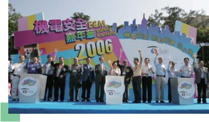 机电工程署除了在机电安全事务上与业界保持紧密联系外,亦积极响应业界举办有关机电安全的推广活动。香港机电工程商联会及香港机电业工会联合会于2006年11月26日,在粉岭鹤薮举办了「机电安全健步嘉年华2006 」 。本署在总工程师梁建民博士带领下,有超过60名同事及其家眷参与这项有意义的活动。两会更邀请了本署署长担任该活动的主礼嘉宾。