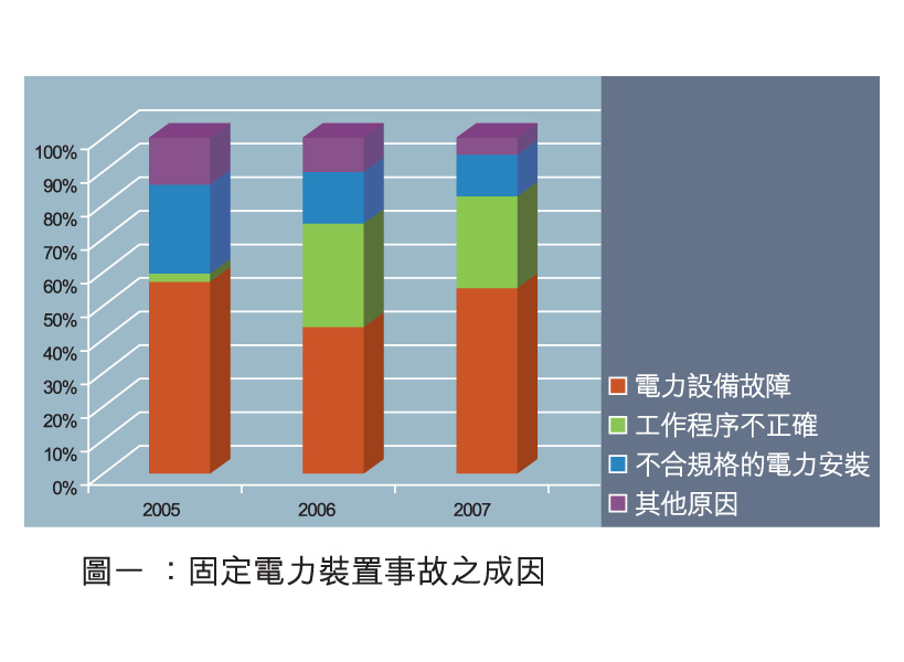 近年牵涉固定电力装置的意外数字有轻微上升的趋势。根据200 5年至2007年的记录,导致电力事故的成因主要有下列数项: