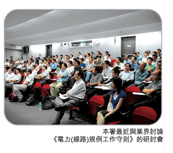 为了不断提升本港的电气安全水平,本署在电力规管方面做了大量工作,包括修订《电力(线路) 规例工作守则》 、协助大厦业主完成电力装置的定期检测、实施电气产品须符合新版国际安全标准、 以及与业界合办大型技术研讨会等, 「简讯」和「预告」会为大家详尽报导。