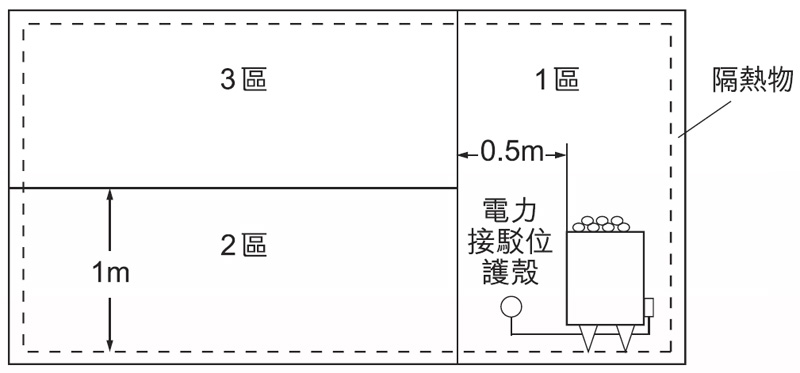 跟从2004年版IEC 60364-7-703的相关国际标准,蒸汽浴室的分区由以往的温度区A 、 B 、 C 、 D更改为分区1 、 2 、 3 ,分区1扩阔至蒸汽浴加热器对上的天花板高度。