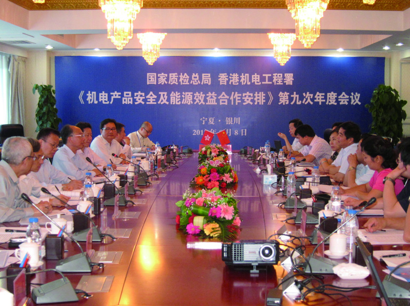 国家质量监督检验检疫总局(简称国家质检总局)与机电工程署,于去年8月8日至10日在宁夏召开了《机电产品安全及能源效益合作安排》 (简称《合作安排》 )第九次年度会议。机电工程署署长陈帆率领四个工作小组(电气、燃气、电梯及能效)的港方成员出席了会议。参加会议的内地成员由国家质检总局检验监管司王新司长率领,成员包括宁夏出入境检验检疫局及其他检验检疫局的相关的工作小组官员等。